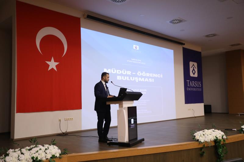 2025-2026 eğitim-öğretim yılının başlamasıyla birlikte, Tarsus Üniversitesi Meslek Yüksekokulu’nda bu yıl ilk kez düzenlenen "Müdür-Öğrenci Buluşması" programı, üniversitemiz konferans salonunda öğrencilerin yoğun katılımıyla gerçekleştirildi