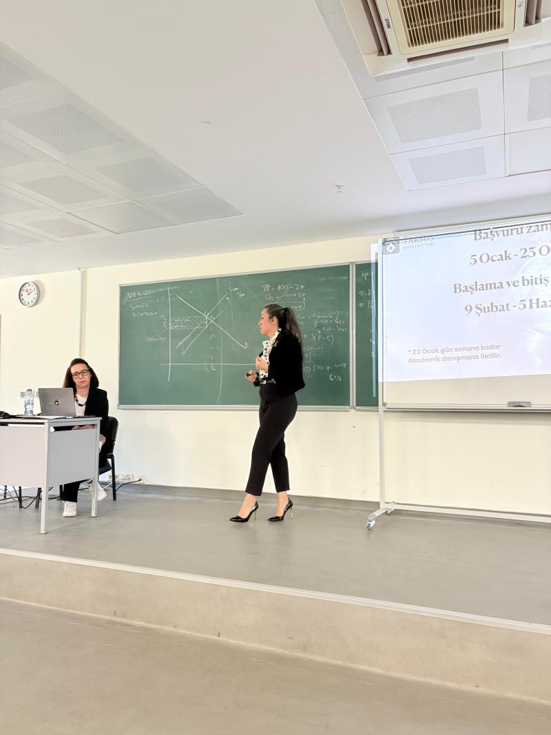 İşletmede Mesleki Eğitim (3+1) sistemi kapsamında, Moda Tasarım Programı, Bilgisayar Programcılığı Programı ve Lojistik Programı ikinci sınıf öğrencilerine yönelik bilgilendirme toplantısı gerçekleştirildi.Toplantıda, Doç. Dr. Esra Enes tarafından yapılan sunum ile öğrencilere İşletmede Mesleki Eğitim (İME) sisteminin amacı, işleyişi ve uygulama süreci hakkında kapsamlı bilgiler aktarıldı. Öğrenci İşleri personeli Halime Ünal’ın da katkılarıyla, başvuru süreci, evrak işlemleri ve uygulama aşamalarına ilişkin detaylar paylaşıldı.