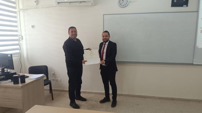 Seminerin sonunda, MYO Müdürü Doç. Dr. Sefa ÖZBEK tarafından Psikolog Erkan ALKAN’a teşekkür belgesi takdim edildi.