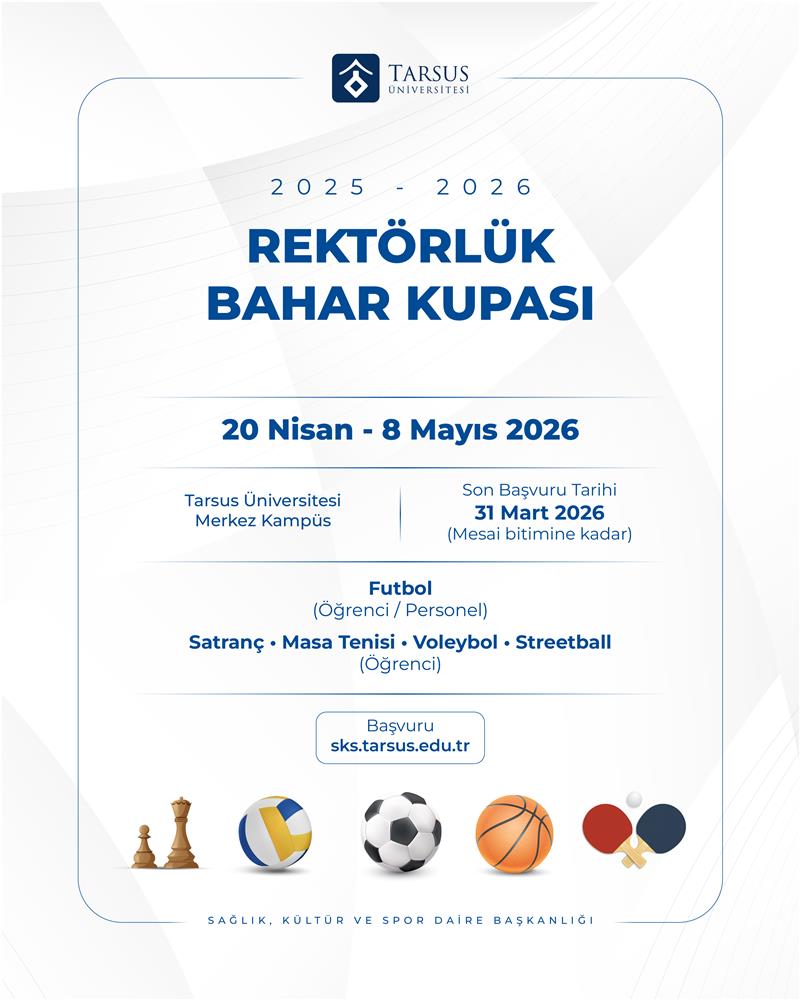 Üniversitemiz fakülte, yüksekokul ve meslek yüksekokullarının katılımıyla 20.04.2026-08.05.2026 tarihleri arasında öğrencilerimiz için futbol, streetball, voleybol, masa tenisi ve satranç; idari ve akademik personel için ise futbol branşlarında 2025–2026 Eğitim-Öğretim Yılı Rektörlük Bahar Kupası Spor Müsabakaları düzenlenecektir.